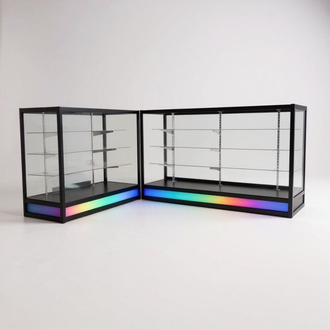 3 Tempered Glass Shelves (10″ × 46″, 12″ × 46″, 14″ × 46″) for organized and elegant display