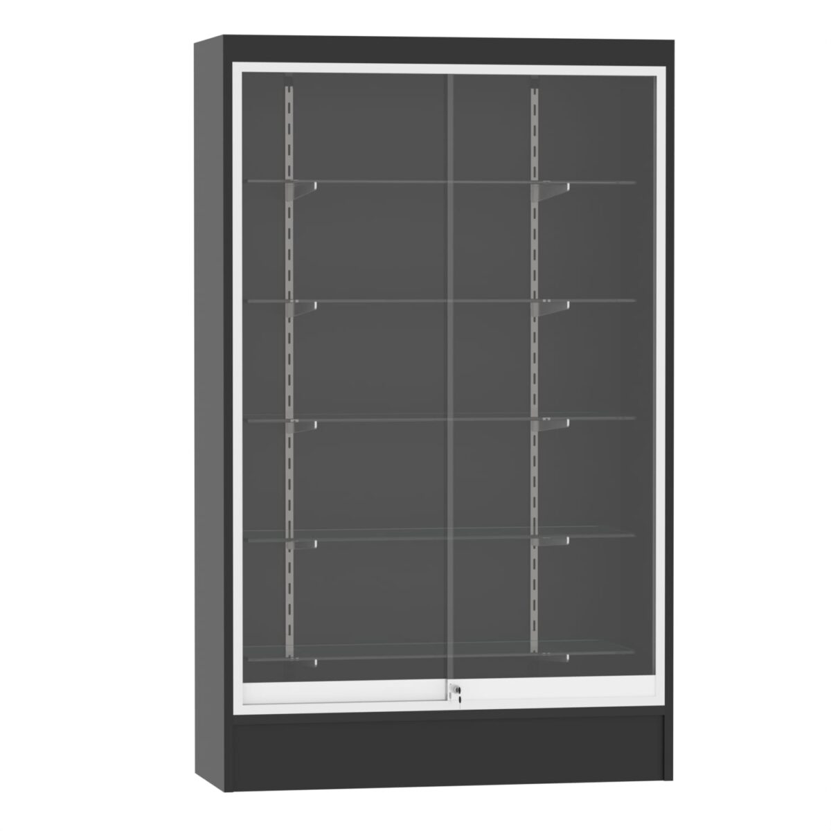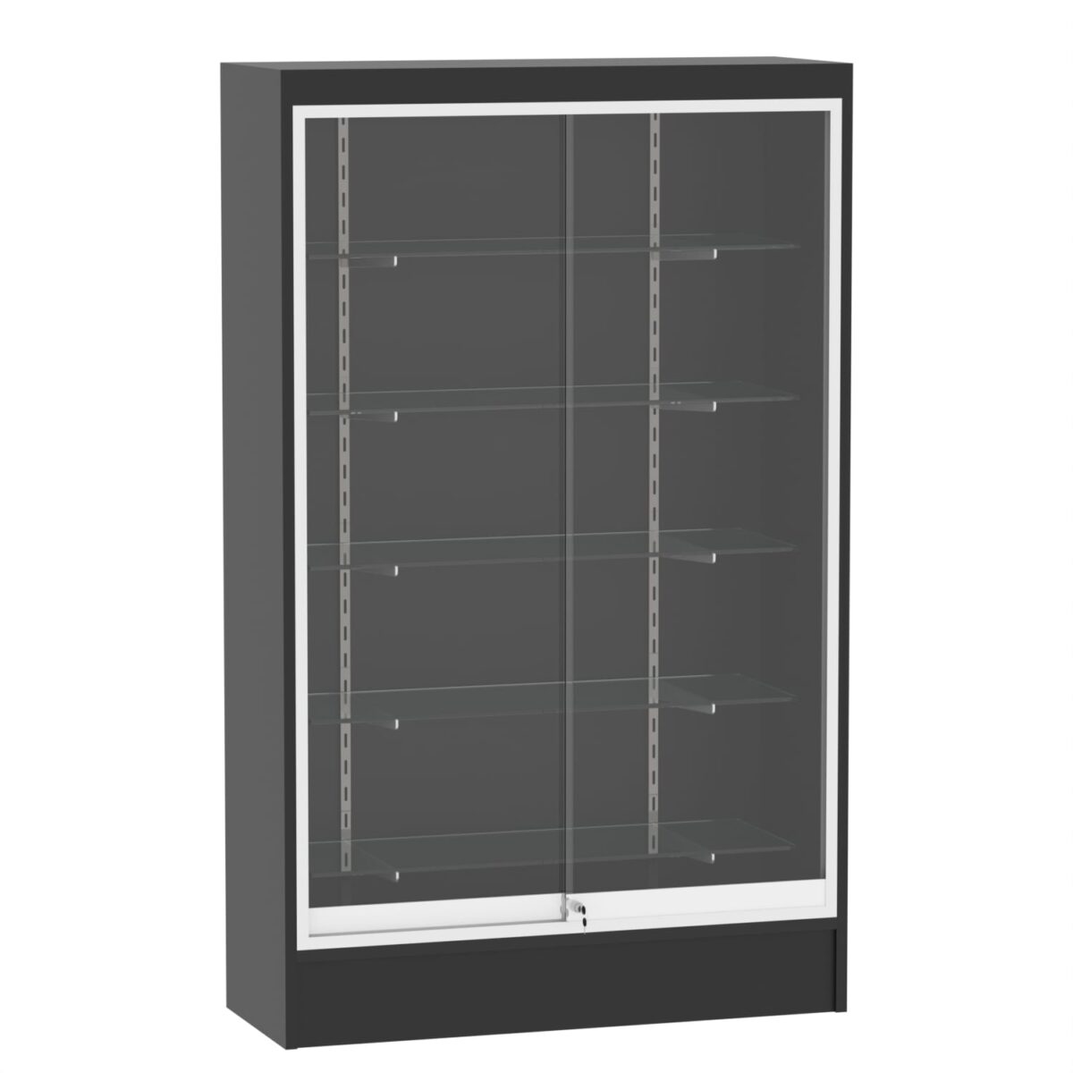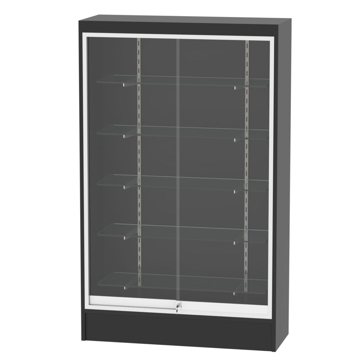 67″ vertical display area, with five adjustable 12″ glass shelves